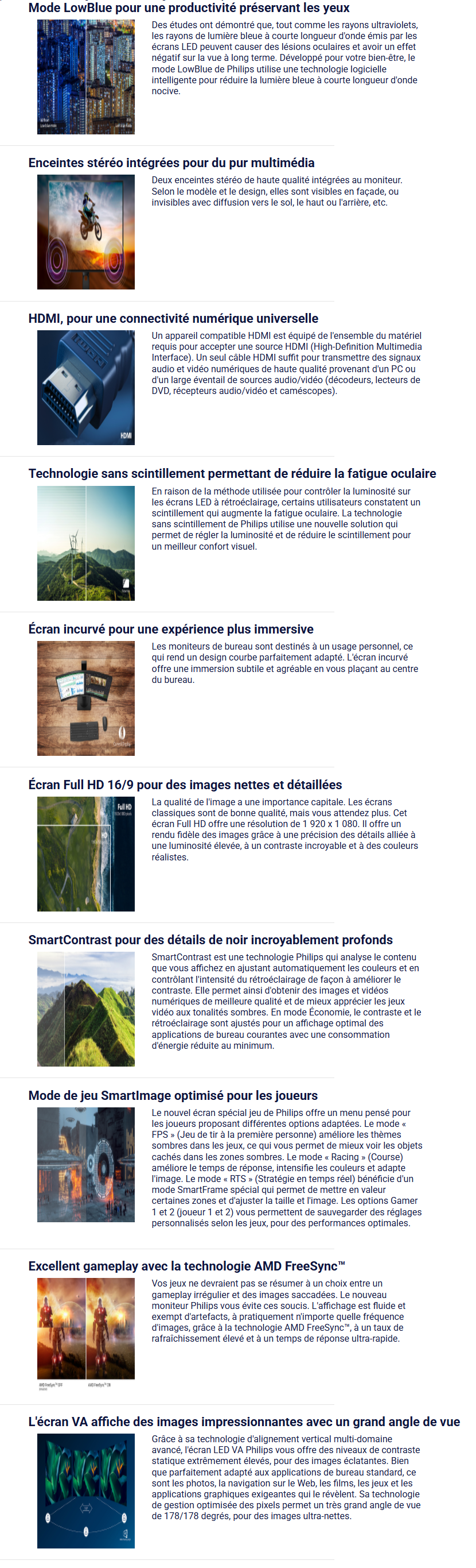 Caractéristiques du moniteur Philips 271E1SCA/00 | |